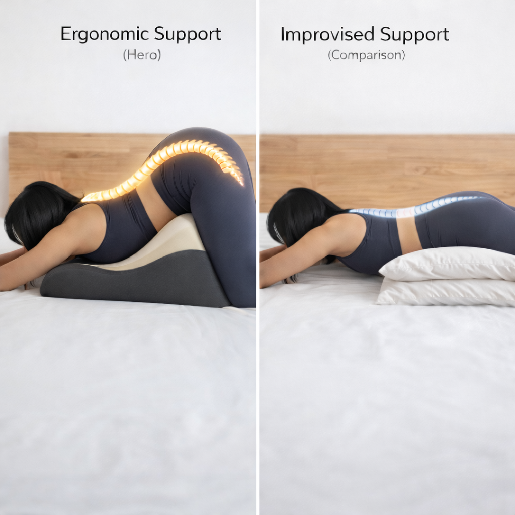 Reported noticeable relief from lower-back and hip discomfort during supported positions.